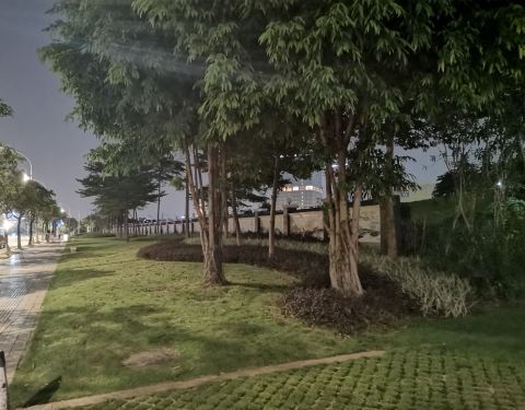揽胜园位于广州国际生物岛上,昰生物岛上三个公园之一,到现在还没有完全建好,所以还没有完全开放,但是,市民可以免费游玩,不过这段时间下大雨,封园,天气好时和工作人员说一下是可以进去游玩的。搅胜园是中间高周边低的公园,为何起名“揽胜园”我不是很清楚,也许星站在最高处可以一搅众胜景吧!但是,我爬到晨高点,没有看到得多胜景!白天太晒,早晨和下午晚些时候可以去爬一爬,呼吸新鲜空气还是不错的!
