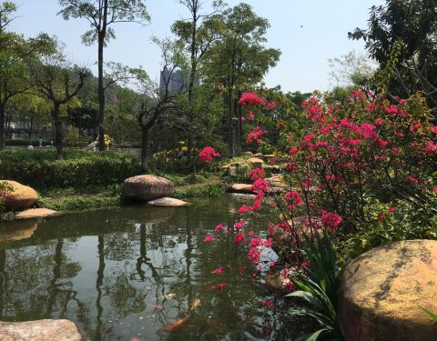 环境优美,景色宜人。鸟语叽啾,林间穿越。空气清新,湖水清澈。花草树木繁茂,四季花品不同环境优美,景色宜人。花草树木繁茂,四季花品不同。樱花、黄槐、鸡蛋花、凤凰木、水石榕、羊蹄甲……姹紫嫣红。鸟语叽啾,林间穿越。空气清新,湖水清澈。漫步其中,心旷神怡。