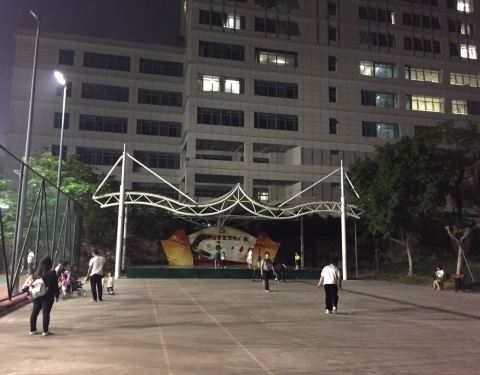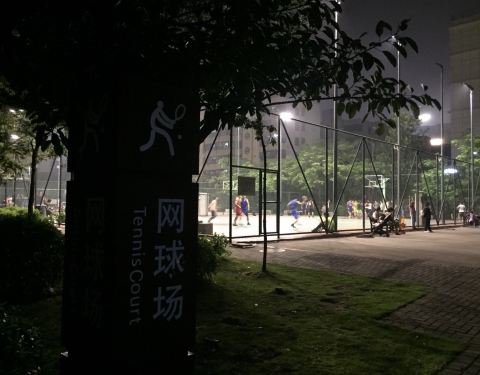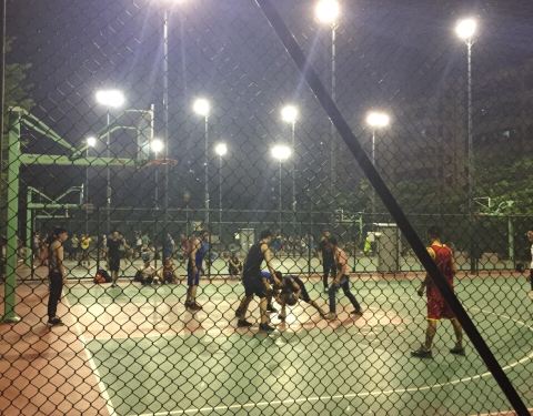 好多蚊子,打篮球什么的就比较舒服,建议白天比较好,晚上蚊子多人员乱,下午打打球散散步,还有就是附近也可以吃东西,好便宜。