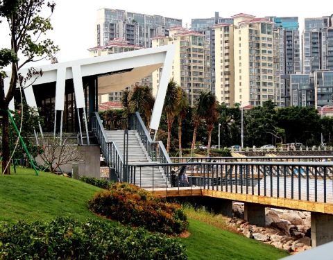 ...驿站位于情侣路与港湾大道交界处,有绿道,有亭子,有观景甜品店,还有椰树沙滩,是人们休闲的好地方