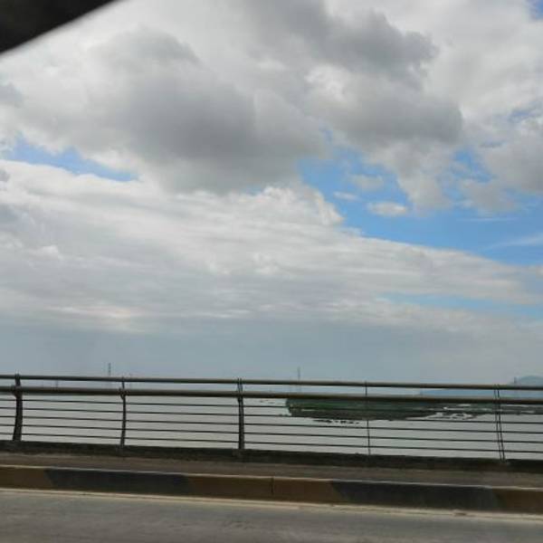 作为唯一连接机场和市区的快速通行大桥,可谓重要的交通要道,自然也是比较代表性的拥堵区域,尤其在晚上,中午和下午稍好,此时景色也很棒,疾驰的车辆将两旁热带植物飞速甩在身后,眼前是一望无垠的天空和洁白的云彩,远处可以看到轮船码头甚至港珠澳大桥等景观,很是惬意。