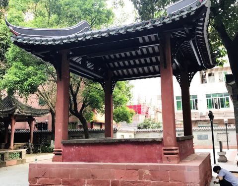 大路上看到一个大红牌坊,被吸引过去看看,不想还是一个有古迹的小公园,夹杂在小区之间,感觉大家对文化还是很尊重的,不然怎么修了这个小院子来维护这个祠堂。 去的时候里面很安静,一位大叔在亭子边的地上写毛笔字。