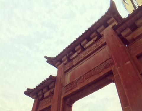 大路上看到一个大红牌坊,被吸引过去看看,不想还是一个有古迹的小公园,夹杂在小区之间,感觉大家对文化还是很尊重的,不然怎么修了这个小院子来维护这个祠堂。 去的时候里面很安静,一位大叔在亭子边的地上写毛...