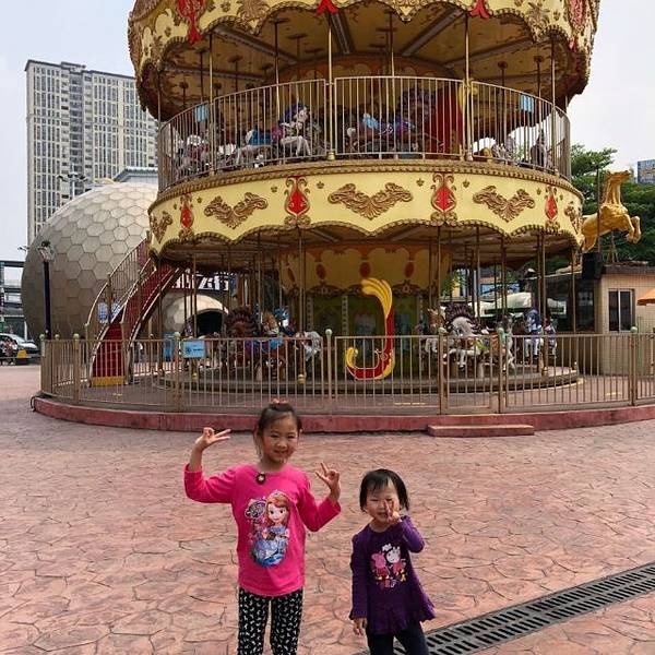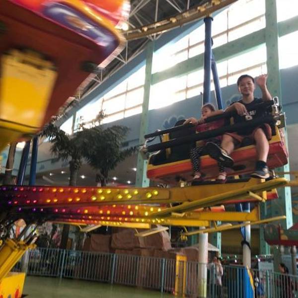 两张套票四个小孩玩,玩了一下午直到她们累了才自己话走,就是有好多游戏不够高,小那两个在那里哭要进去玩,她们讲话最好玩是玩家庭过山车玩了好几次了。