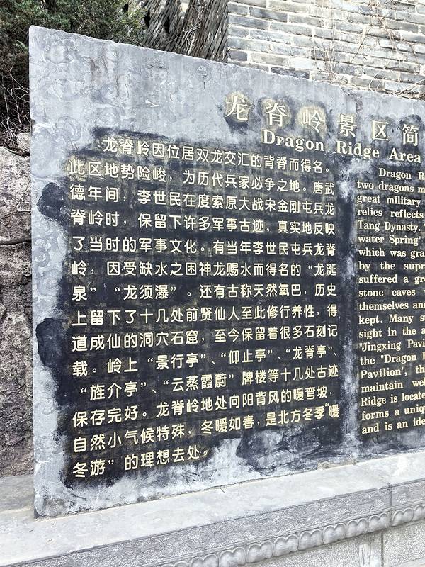 ...中心出发到达的第一个景点,这里有好多可看的景点,如:南天门,唐营,关帝庙,真武庙,太宗赋诗亭等龙头寺,原名塔头寺,因岩下黄土坡古有空王塔院而得名。后唐贞观十五年,太宗皇帝前来朝山谢雨,巧遇神龙显灵而改为现名。 龙头寺景区是坐观光车从绵山票务中心出发到达的第一个景点,这里有好多可看的景点,如...龙头寺,原名塔头寺,因岩下黄土坡古有空王塔院而得名。后唐贞观十五年,太宗皇帝前来朝山谢雨,巧遇神龙显灵而改为现名。 龙头寺景区是坐观光车从绵山票务中心出发到达的第一个景点,这里有好多可看的景点,如:南天门,唐营,关帝庙,真武庙,太宗赋诗亭等。在太宗赋诗亭有一块大石碑,石碑后边是太宗赋的诗,前边是太宗的画像,白线条的,很细,所以要仔细看才可以看出来。太宗画像显示太宗富态又潇洒且庸荣华贵。 我是把龙头寺作为绵山旅游的最后一站,到达时还有几位游客,一自称讲解员的女子,主动地免费地给我们讲解龙头寺,特别告诉我们怎么样踩地上自然色和红色的福字等等,最终才知她是希望我们买一个带有红色彩带的小铃铛,可以在彩带上写上名字和愿望,然后挂在指定地方,10元一个,结果没有一位旅客愿意买,她白忙活了,不管怎么样,还是非常感谢她的讲解的。 龙头寺景区,要细游的话,一两个小时是需要的。 展开