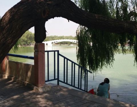 住的酒店边上,很安静,很舒服,坐在河边的椅子上,看着风景一下子整个人都安静下来了。 公园里有养动物:骆驼、牦牛、梅花鹿、羊、鸵鸟,带小孩子玩还是蛮值得的。 公园免费开放。