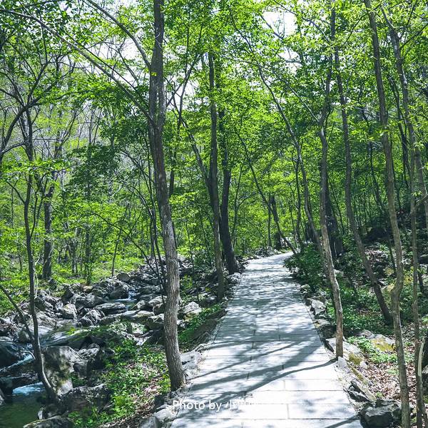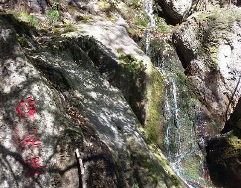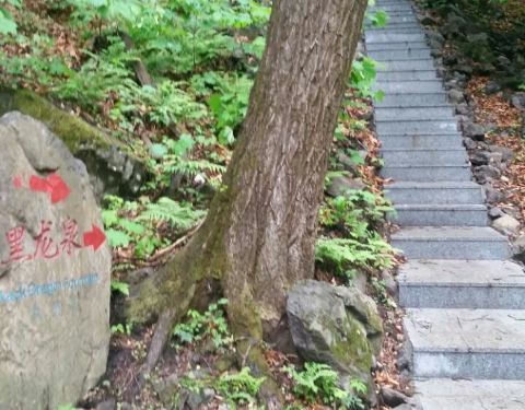 这里山高,沟深。据说山中有老虎显灵所以得名。“树干”构成的“山门”后是进入景区的步道。巨石上刻着“虎塘沟”三个大字,还有两只虎视眈眈的“猛虎”。一进去沟里,天然氧吧,沟里好凉快,溪水,绿苔,心情瞬间提升好几星。开始爬山是规整的台阶,路越来越陡。虎塘沟景区空气中负氧离子浓度大约是城市中的60倍。虎塘沟是为数不多的原始生态景区,有“天下第一幽”之美誉。碧绿的苔藓与金黄的秋叶交相辉映。虎塘沟景区是青山沟风景名胜区四大景区中具有原始韵味的景区,是青山沟风景名胜区里的“绿色王国”和“植物大观园”,以森林浴和探险游等为主要特色。这里深谷幽幽,古树参天,原始天然。有响溪、黑熊碧同石、九曲天水、虎啸瀑、仙姑瀑、黑龙泉、老虎背、虎穴等景点。感觉虎塘沟还挺好玩儿,主要是沟底开始爬山,一路各种小景点,虎塘沟最有特色的应该是天梯了。但是因为时间关系,我就没去,因为一会还有其他安排。虎塘沟里面挺深的,小溪小瀑,小山小水,有点像荔波,里面凉快极了。走在山间石径上,能够充分感受到“明月松间照,清泉石上流”的情韵。只有流在这样排列着地垄沟样的石头上,“响溪”才会有如此空灵的声韵。溪水冲洗着凹凸不平的石面,溅起的水花,在阳光的照耀下像一颗颗晶莹夺目的珍珠。