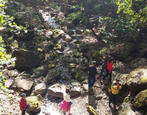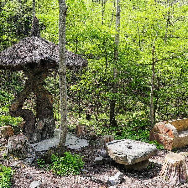 一个极具原始野趣的地方,堪称“绿色王国”,植物葱郁,林荫蔽日,更兼有溪流、小潭、深谷,幽深寂静,特别是空气十分纯净,是天然的大氧吧。