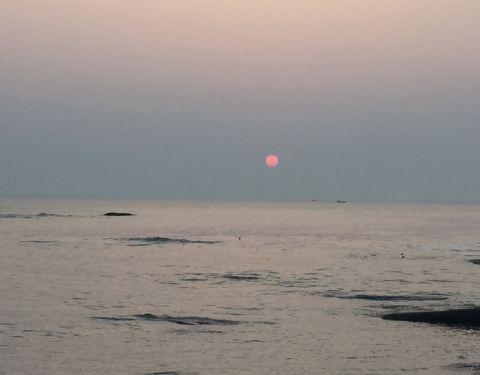 海边景色美丽,游泳场水下水岸沙滩平和。度假住旁边的宾馆很惬意。