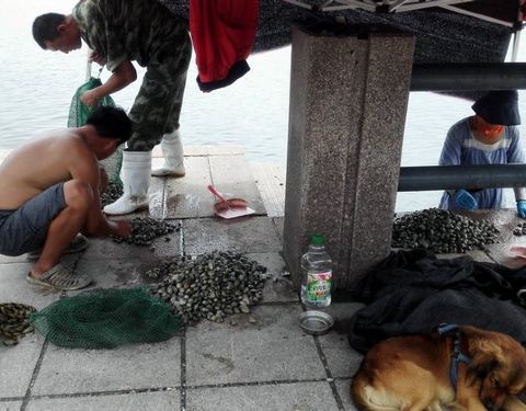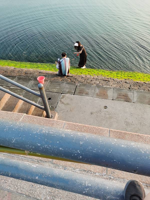 早起赶海的人们(女的掉海里了)悦海公园日出