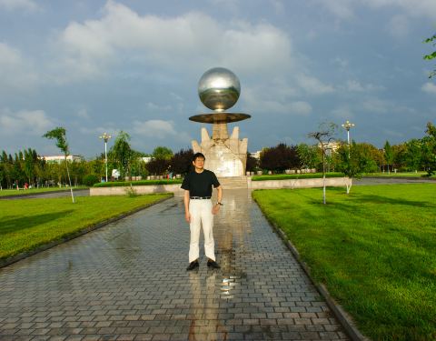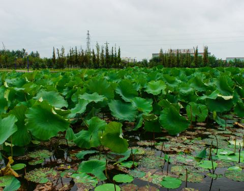 这是几年前的一段记忆,清晨雨后,广场的地面有些湿滑,但空气清新,绿草成荫。印象比较深刻的是广场中心一个“日月山”雕塑,这个图像文字雕塑象征着莒文化源远流长。 广场周围是 一片绿地,还有一个荷花池。