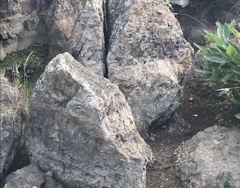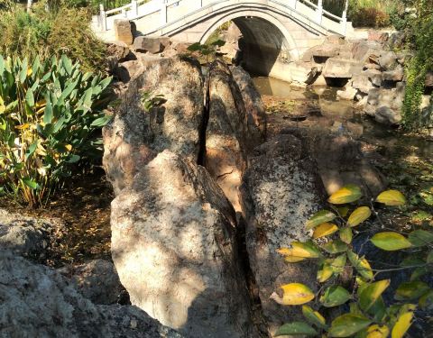 试剑石位于镇江北固山,不过是在景区大门以外的,平地上有几块高大的石头,其中有两块当中裂成两半,...