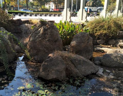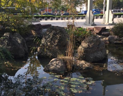 在北固山正门石牌坊的背面东侧,有一尊白色石头雕像,就是试剑石的标志物。石头是在雕像斜对面的水池中,不过这也只是个传说罢了。 这个景点实际上实在北固山景区的大门外的,所以即便不是买票入内,也是能看到的,只是景观本身并没有什么可看,重要的是背后的故事,总是很有趣的。