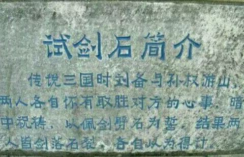 ...楼的地方,石头有一个笔直的裂痕,恰如被剑劈开,加上所处的位置,于是有了刘备和孙权以剑劈石的传说