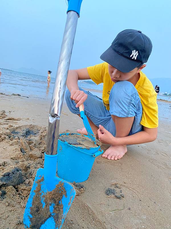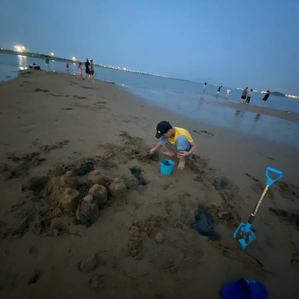 第一次去碰上淤泥沙滩,上面小螃蟹横行,娃冲过去就陷里面,出来鞋子也丢了,后面又去了几次,淤泥沙滩再没出现...免费24小时开放的沙滩,水有点脏,沙有点黑,胜在可以傍晚太阳下山再去,挖沙子,抓螃蟹,捡贝壳。