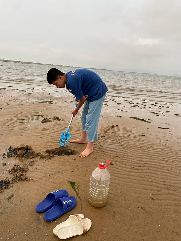 第一次去碰上淤泥沙滩,上面小螃蟹横行,娃冲过去就陷里面,出来鞋子也丢了,后面又去了几次,淤泥沙滩再没出现过,也是不解之谜。