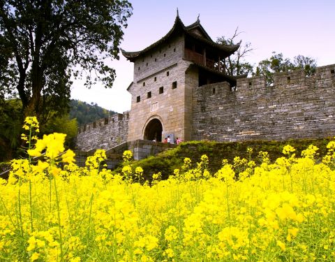 一个保存比较完整的苗寨,寨子是按八卦式布局,有完整的护寨墙,原始的寨大门,还有一片神奇的树木全长在石板上,被本寨人称为神树。还有一个天然的湖:千潭湖。里面生长着一种生物叫水母的,也称为“水中大熊猫”“亿岁仙子”等。其生物对水质要求非常之高。可以发挥下你的想象力
