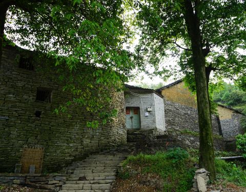 四周青山环绕倒映在如镜的湖面。家寨植被茂盛、生态环境良好.这里所有的建筑都是用石头做的
