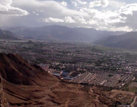 我是独自开路爬山上去的,虽然没时间去寺庙转转,但站在山上可俯瞰整个拉萨城,视野可为极好……