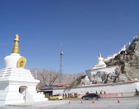 位于拉萨红山之下,布达拉宫右侧,由三座藏式白塔组成,据说历史比布达拉宫还要悠久,由松赞干布的尼泊尔夫人所带来的工匠建造。