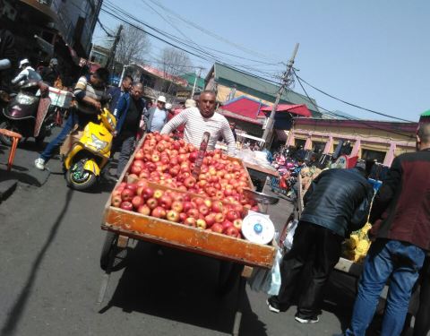 汉人街大巴扎,就是个大集市,一楼菜市场,二楼买衣服,旁边有条美食街。菜市场里的馕摊美食街,下午四点,还很早稀稀疏疏有几个人在吃东西。伊宁的少数民族还是挺多的,大街上随处可见,比乌市普及。