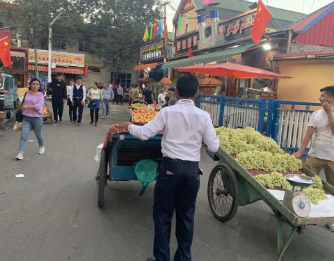 - 汉人街大巴扎,就是个大集市,一楼菜市场,二楼买衣服,旁边有条美食街