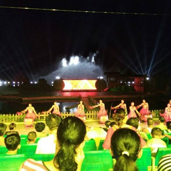 是在长寿岛上观看的,非常精彩的一场演出,主要表演了带有巴马文化色彩的一些活动,比如养生,孝道,竹竿舞,上梁舞等等,看完演出你就会对巴马的文化有一个基本的了解。当然最高潮部分是演出结束后会有一群美女...