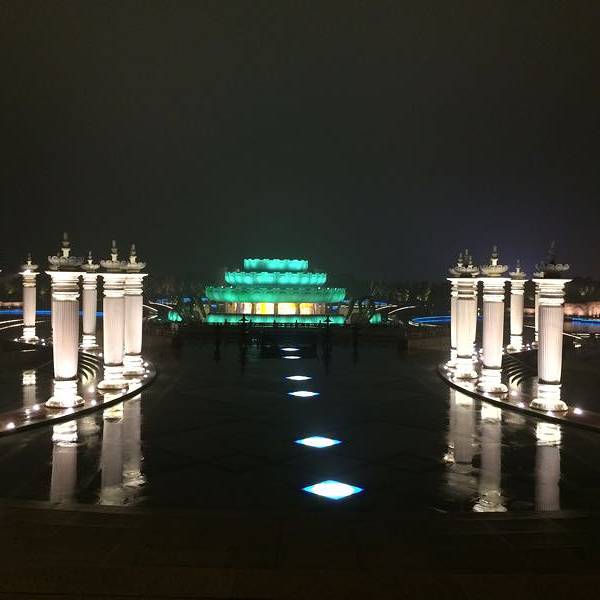 慕名前往,大愿文化园非常大,分别由五通桥、大门、牌坊、弘愿堂、莲花净土、锡杖广场、万方摩尼、虹桥飞天、八公德水等景点组成。