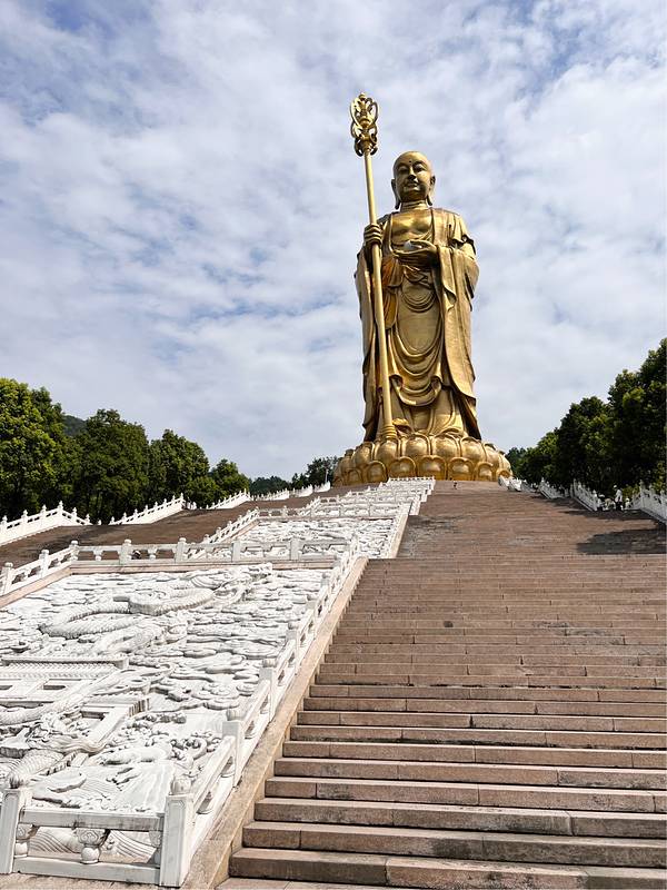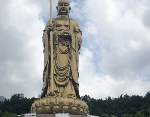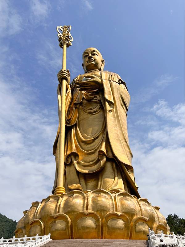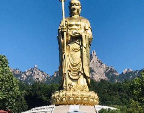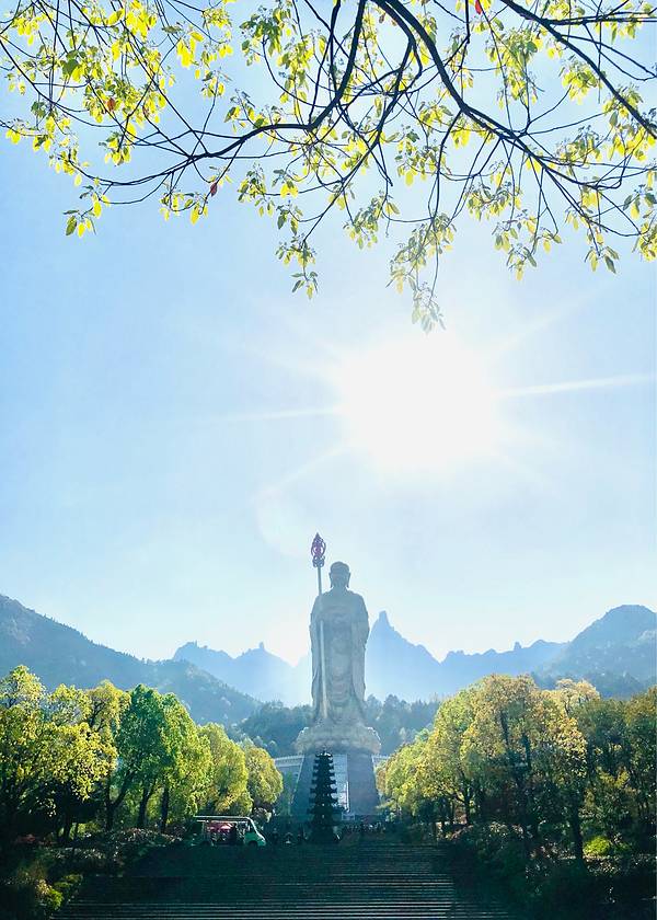 在九华山旅行,到了山下...九华山是中国佛教四大名山之一、举世公认的地藏王菩萨道场。它的美不仅仅表现山峰之间,还有着不可或缺的佛教文化,这里遍布寺庙。在九华山的山脚下还有一个世界第一高地藏菩萨露天铜像。