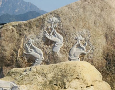 沿着文化园核心景点地藏菩萨铜像方向走,中间可以看到世界上最大的汉白玉莲花宝座“净土莲花”,这是大愿文化园展示的西方极乐世界庄严、清净的佛国净土。莲花因其“出污泥而不染”,故常被喻为“佛性”。