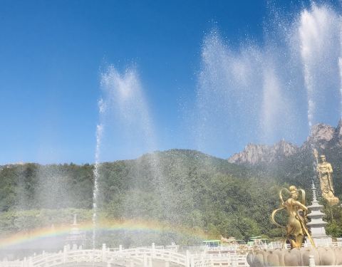 下午整点还有飞天表演,在喷泉的不断变化下,随着太阳的照射一道美丽的彩虹直入眼帘,蓝蓝天空下非常震撼⋯去九华山第一站首选的是大愿文化园(免费门票)园内挺大的,可以做小车进行游览(30元/人),一座纯铜打造99米的大佛位于群山之间的龙脉之处,视觉效果很立体,大愿地藏,我佛慈悲[双手合十]。下午整点还有飞天表...去九华山第一站首选的是大愿文化园(免费门票)园内挺大的,可以做小车进行游览(30元/人),一座纯铜打造99米的大佛位于群山之间的龙脉之处,视觉效果很立体,大愿地藏,我佛慈悲[双手合十]。下午整点还有飞天表演,在喷泉的不断变化下,随着太阳的照射一道美丽的彩虹直入眼帘,蓝蓝天空下非常震撼⋯ 展开