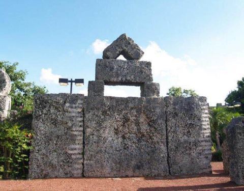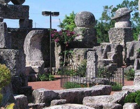 珊瑚礁城堡坐落于迈阿密南部1号公路旁,是一处独特神奇的历史景点。Ed Leedskalnin在失恋后,于1923年至1940年凭一己之力建造了这座城堡。石门、桌椅、儿童床都是用珊瑚石打造,Ed先生曾表示自己利用埃及金字塔的原理,不少科学家前来研究,但如何移动巨大的石块和石门的推动至今也是未解之谜。