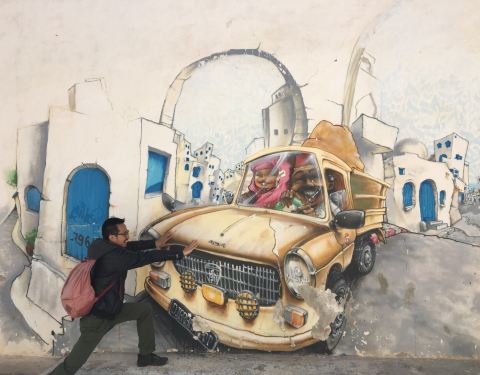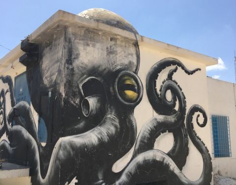 我们在吉尔巴岛上住了六个晚上,非常喜欢这个迷人的岛。岛的面积并不小,可以逛的景点也很丰富。我们现在住在游客区的度假酒店,打车去市中心也不过5第纳尔,很方便,而且很安全。 我们去了Djierbahood,一个街头艺术家的天堂,这个露天的涂鸦胜地,为宁静的村落带来了人气,每一幅涂鸦或展现人文、或环保、或深沉、或生活。 djerbahood800米处就是犹太人另一个朝圣胜地,据说这里每年都会有大批犹太人前来朝圣,古老的犹太教堂具有百年历史,但并不是时时刻刻开放,我们去的时候正好关门,要等到下午三点半才开放。 在岛上的日子,很闲散,我们还乘坐了海盗船,出海一日游,价格可以和船老大谈,提供午餐和娱乐,所谓的娱乐就是大家一起跳舞吧!如果运气好的话可以看到海豚哦,乘船1个多小时我们便来到了弗拉明戈岛,可惜没能看到火烈鸟,但午餐的烤鱼弥补了我们的忧桑,饭后一起去海里抓螃蟹吧。