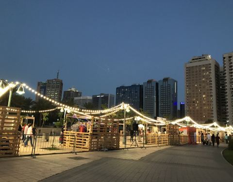 在市中心酒店附近,晚上散步来看个夜景。正好赶上当地人的周末夜市,小夜灯和气球把市集布置得很漂亮,有卖各种小食、物品的摊位。不远处就是海滨大道,夕阳下吹吹海风神清气爽,远处连成一片金碧辉煌的就是八星...