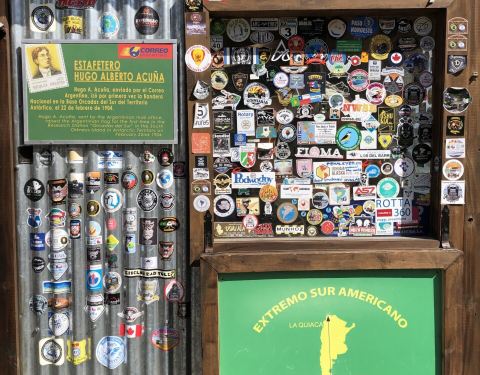 乌斯怀亚被誉为世界尽头的城市,这里也有一座世界尽头的小邮局,非常的有意思。整个邮局并不是很大,但里面挂满了各式各样的明信片和邮票。整个邮局只有一位老爷爷,他为大家盖邮戳寄信件,寄出这么一张明信片或者是信,寄给自己的朋友或者是自己,都非常的有意义。