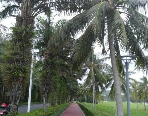 ...看到的就是这个场景,就是椰子树有点高,椰子果不好采摘,否则边打球边喝新鲜椰子,这种感觉一定很好球道两边都是椰子树,来海南最喜欢看到的就是这个场景,就是椰子树有点高,椰子果不好采摘,否则边打球边喝新鲜椰子,这种感觉一定很好!博鳌BFA的球场很漂亮,果岭推起来很舒服,还是喜欢这种草多一些!