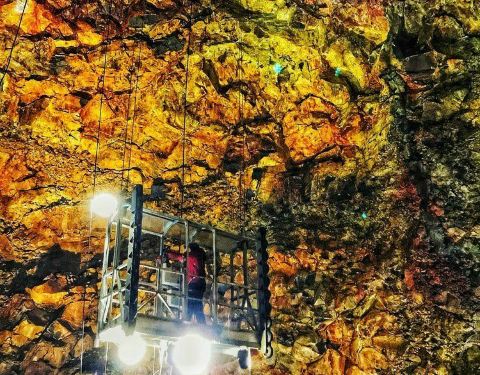 这是一处在一个古火山口进行的火山口的探险活动,在导游的带领下,大家会深入到火山口内部乘坐升降梯进入到火山口底部,非常刺激。