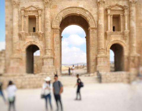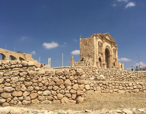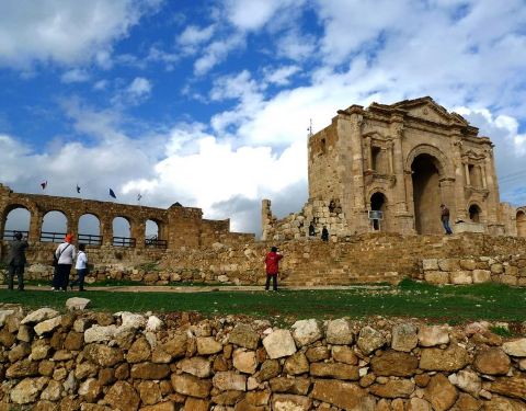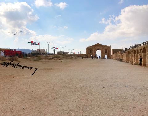 哈德良凯旋门是为纪念罗马帝国的皇帝哈德良巡视而建。如今,这座拱门成为进入杰拉什古城的第一站