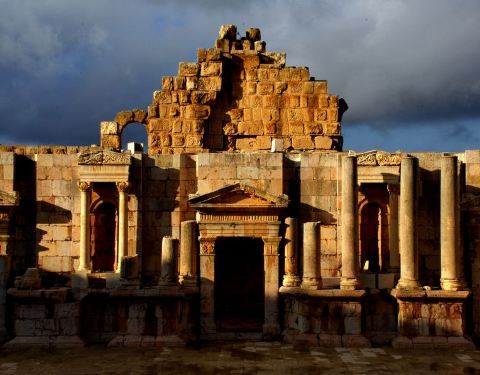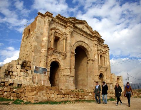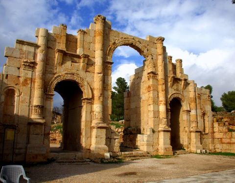 杰拉什人为了迎接罗马皇帝哈德里安的来访,在城市南部兴建了一座雄伟的凯旋门,命名为“哈德良凯旋门”。这座雄伟的凯旋门工艺精湛,可以从中看到当时约旦人的建筑艺术。