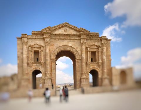 【哈德良凯旋门】位于约旦杰拉什罗马古城的南端。哈德良凯旋门 是以古罗马帝国皇帝 哈德良命名的,这位 安敦尼王朝时期的罗马帝国皇帝,是帝国最发达、最繁荣时期的第三位皇帝。公元129年,为迎接这位哈德良皇帝...