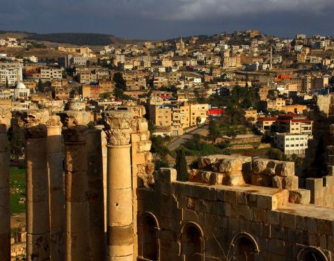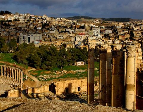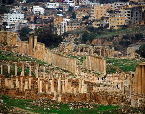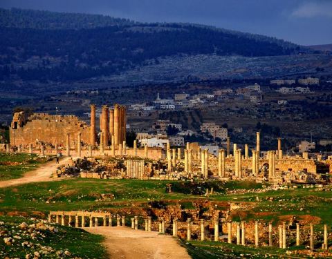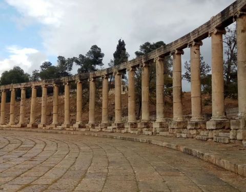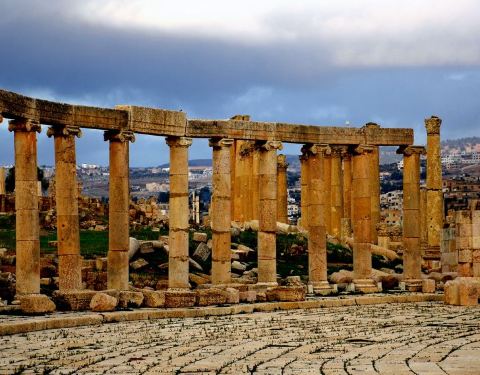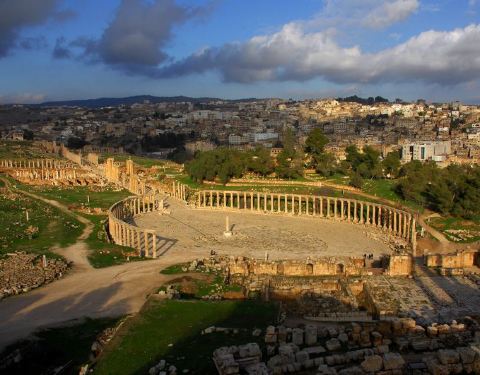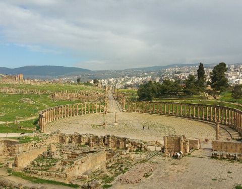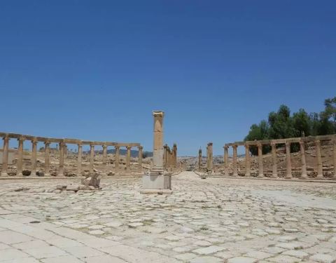 约旦杰拉什椭圆形广场 现存古罗马古迹中保存最完好的圆柱广场,在罗马时期广场是集会和举行重要庆祝...