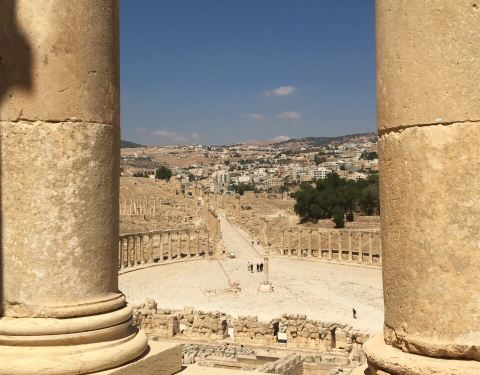 这广场是最能代表杰拉什的形象,椭圆形的中心广场是杰拉什的核心区域,周围建有边廊供人行走,因此也是游人最喜欢的拍照留念地点。