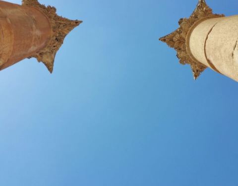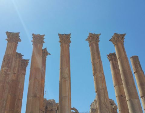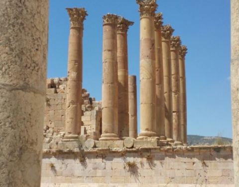 这里供奉的是杰拉什的主神,月神阿尔忒弥斯。虽然只剩几根石柱,倒是保存地很好,尤其是赭红色的科林斯柱头,花瓣完整,雕刻精致。只可惜这神庙如今已倒塌,连想像也无从想像。