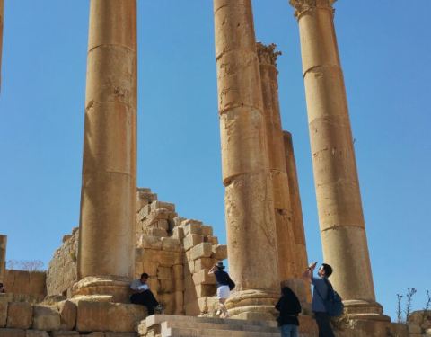 【阿尔忒弥斯月亮女神庙】位于杰拉什罗马古城的东北部,它是古城遗址里供奉主神阿尔忒弥斯月亮女神的神庙,也是整个古城遗址中最精华的部分。两排高高矗立的石柱顶端,雕刻的花瓣精美,虽经千年的风吹雨打,仍然...