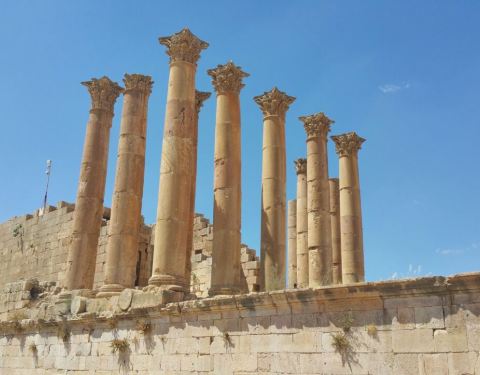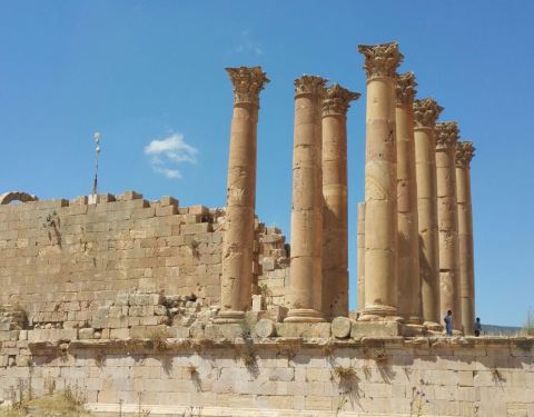 宽大台基上的神庙遗址是杰拉什遗址的精华,神庙已经倒塌,残留的墙体,高耸的立柱可以提现神庙在这座...