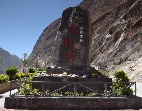 虎跳峡(香格里拉段)是世界上落差较大的峡谷,位于香格里拉县虎跳峡镇东部,分为上、中、下虎跳三段,全长约20公里。金沙江奔流至此,被玉龙、哈巴两大雪山所挟峙,江面窄处仅二三十米,加上巨大的落差,江水奔腾汹涌。除了雄奇的自然风光,虎跳峡(香格里拉段)更是世界知名的徒步胜地,每年慕名而来的户外爱好者络绎不绝。走过中虎跳,下到江边,你才能真正领略到虎跳峡(香格里拉段)恢宏磅礴的气势。 虎跳峡(香格里拉段)以奇、险、雄、壮著称。其中,上虎跳以“峡口”和“虎跳石”称雄,中虎跳以“满天星”和“一线天”为险,而下虎跳则以“高峡出平湖”和“大具风光”为美。 上虎跳 上虎跳是虎跳峡(香格里拉段)的上段,距离虎跳峡(香格里拉段)约9公里,是整个虎跳峡(香格里拉段)窄的一段。其中观景台附近,宽度仅有不足30米,江心雄踞一块三角形巨石,把激流一分为二,溅起如雪的浪花和阵阵涛声。传说曾有一猛虎借江心这块巨石,从玉龙雪山一侧,一跃而至哈巴雪山这侧,所以此石得名:虎跳石。上虎跳开发较早,修有栈道可以从路边下至江边,脚程快的人20分钟即可。因为道路简单易行,路程较近,难度较低,有人戏称上虎跳为“老年人活动中心”。 中虎跳 中虎跳在上虎跳之下,距离香格里拉上虎跳景区-观景台约8公里路程。云南香格里拉中虎跳峡口略宽,江面相对开阔,但险滩众多。江水在礁石区穿行,在阳光的照耀下,波光粼粼,仿佛漫天闪耀的星星,故称:满天星。沿着“张老师小路”蜿蜒下行,小路狭窄崎岖,至江边约需40分钟。江边怪石嶙峋,江水激荡奔涌,溅起水雾一片,可以看到绮丽的彩虹。返回公路的山路有两条,分别是张老师客栈修建的“108级勇者梯”和天梯客栈修筑的“天梯”路,沿着山路蜿蜒上行,攀爬上几近垂直的天梯,手脚并用的回到公路上后,无不大汗淋漓。但回看对面苍茫的玉龙雪山和脚下奔腾的金沙江,还有远处峡谷中的一线天空,你会觉得所有的辛劳都是值得的。 下虎跳 从中虎跳沿着公路前行,经过山体松动滚石连连的“滑石板”,眼前忽然一片开阔,江面变得开阔,江水趋于平缓,宛如峡谷中出现了一个巨大的水库,这里就是下虎跳。远处阡陌纵横,炊烟袅袅,已是丽江市的大具乡了。
