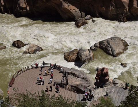还有个中虎跳和上虎跳,搞不清楚,但这个挺震撼的。还有个虎跳石的传说,也就听一听吧下虎跳,在香格里拉范围内。还有个中虎跳和上虎跳,搞不清楚,但这个挺震撼的。河道突然变窄,原本安静的江水变得极其不安分,争先恐后通过峡谷。还有个虎跳石的传说,也就听一听吧。
