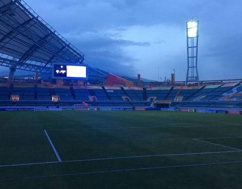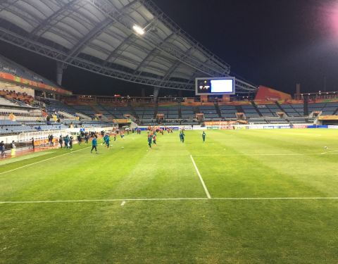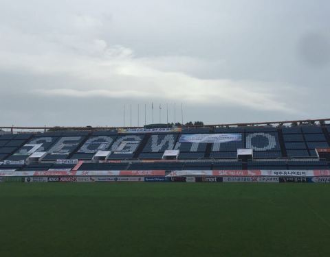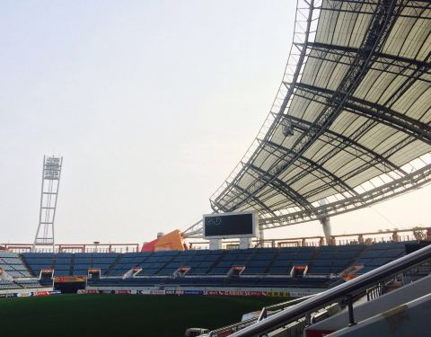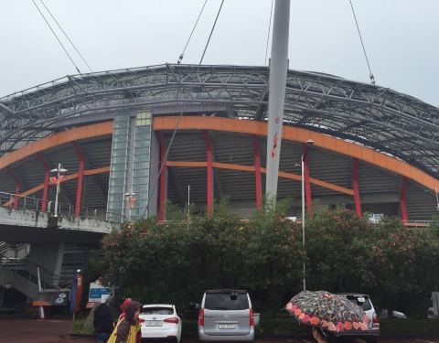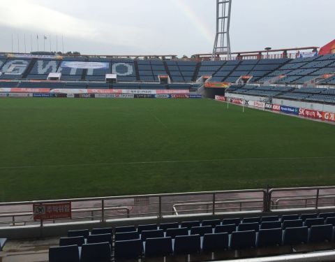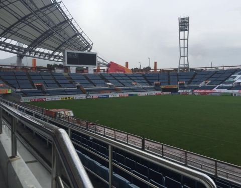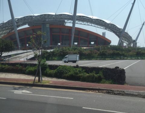 是球迷的话来西归浦总是要来看一下这个球场,2002年世界杯中国队打入决赛圈,在这里和巴西队曾经过过招,虽然落败,但是那场比赛还是留在了脑海中。这个体育场远看就很壮观,是建造在海边的足球场