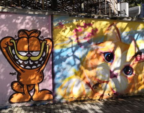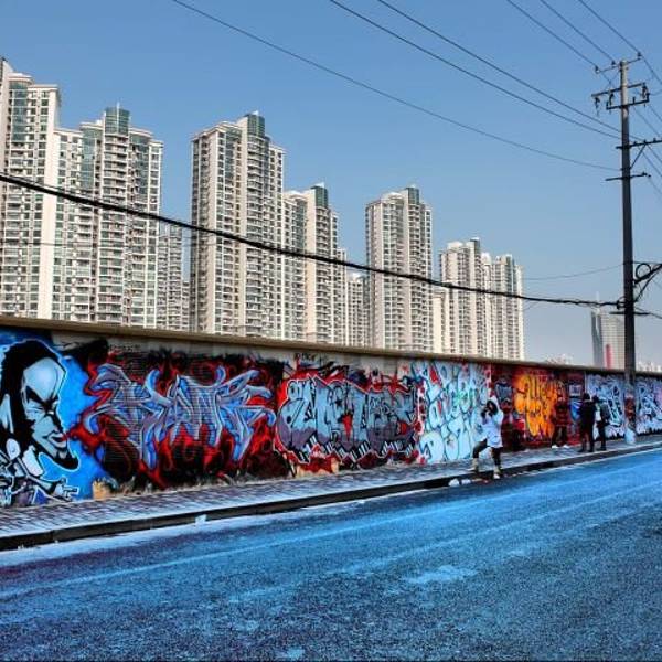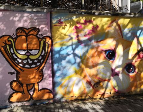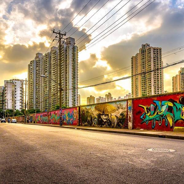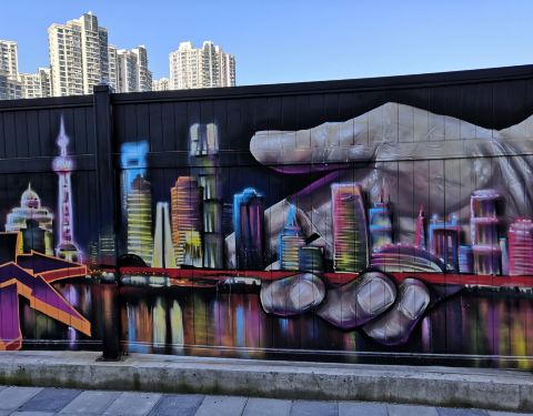 在这里是我们上海特别有名的壁画一条街。非常可惜,现在的涂鸦墙已经被拆除了,一大片了