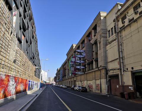 极少有车通行,没有公交车,整条路靠北的墙壁上都涂满了各种各样的涂鸦,不定期更新,靠南的是一整排...